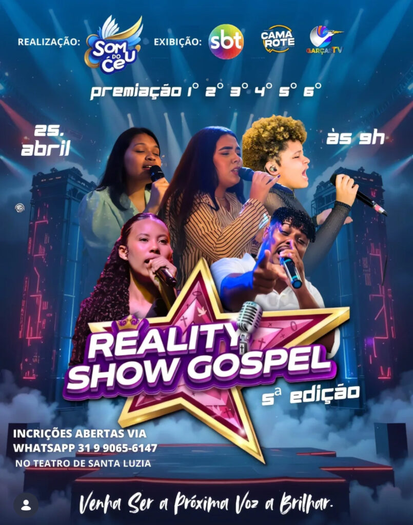 A cidade de Santa Luzia se prepara para receber um dos eventos mais aguardados do cenário gospel regional. A Som do Céu Produtora anuncia a 5ª edição do seu Reality Show Gospel, que acontece no dia 25 de abril, a partir das 9h, reunindo participantes que buscam uma oportunidade de destaque na música e no meio artístico.